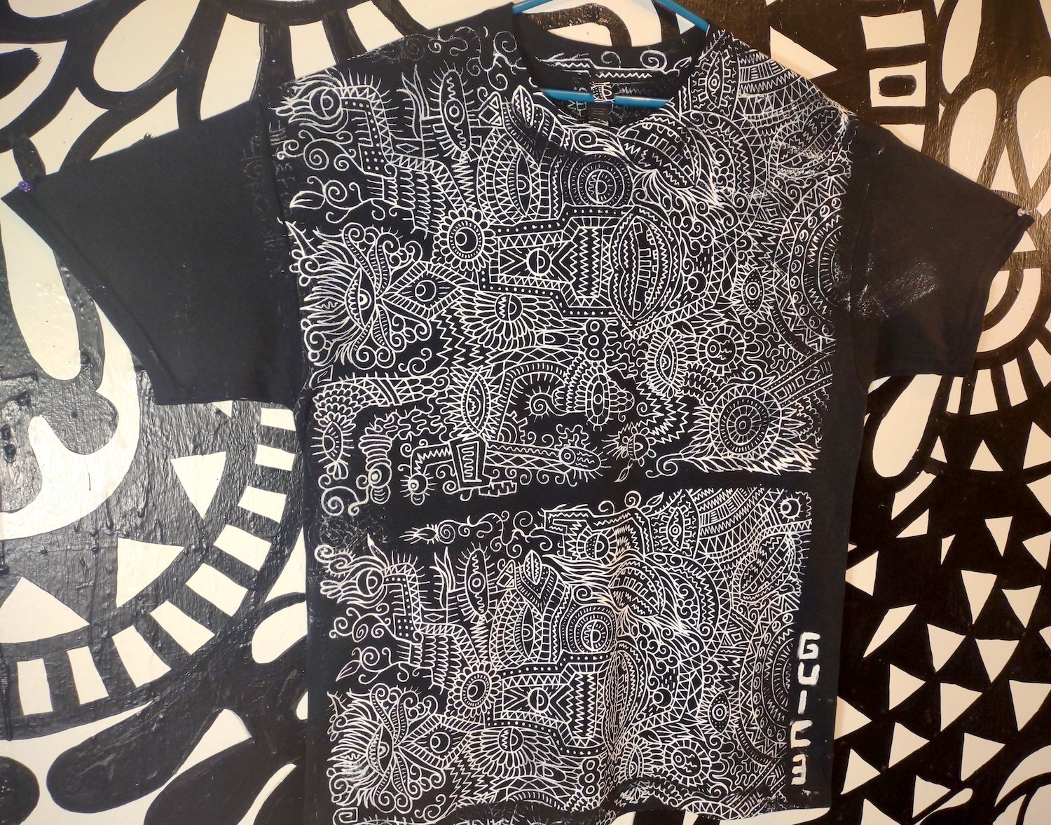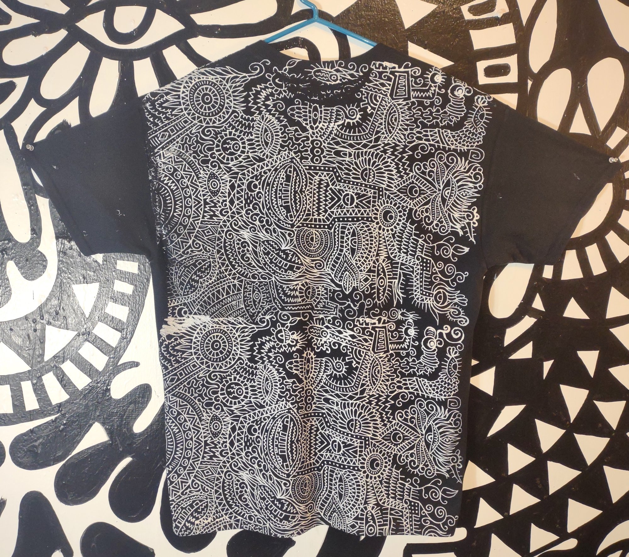 Made to order. 1 of 1. Double sided print. Hand screen printed by me. White ink on black tee. Heat set with an iron. Machine wash on cold and hang dry. Ship within 3 weeks of ordering.