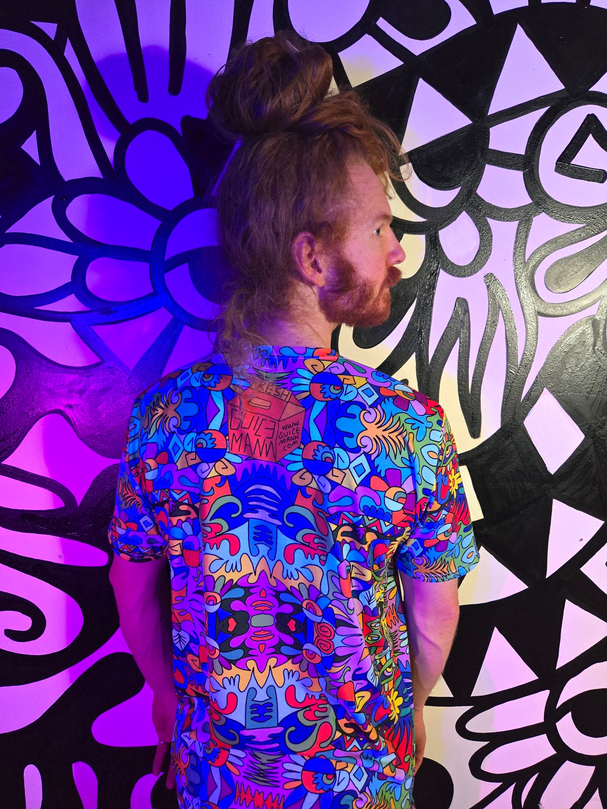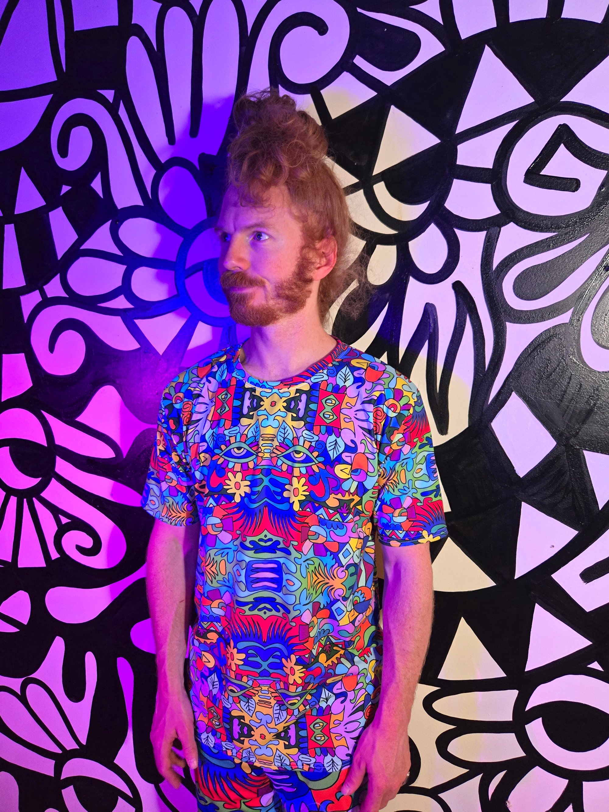 Printed on comfortable cotton touch polyester jersey that won't fade when washing. Ships within 4 weeks of ordering. Unisex sizes. I'm wearing a size large in these pics.