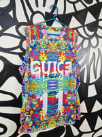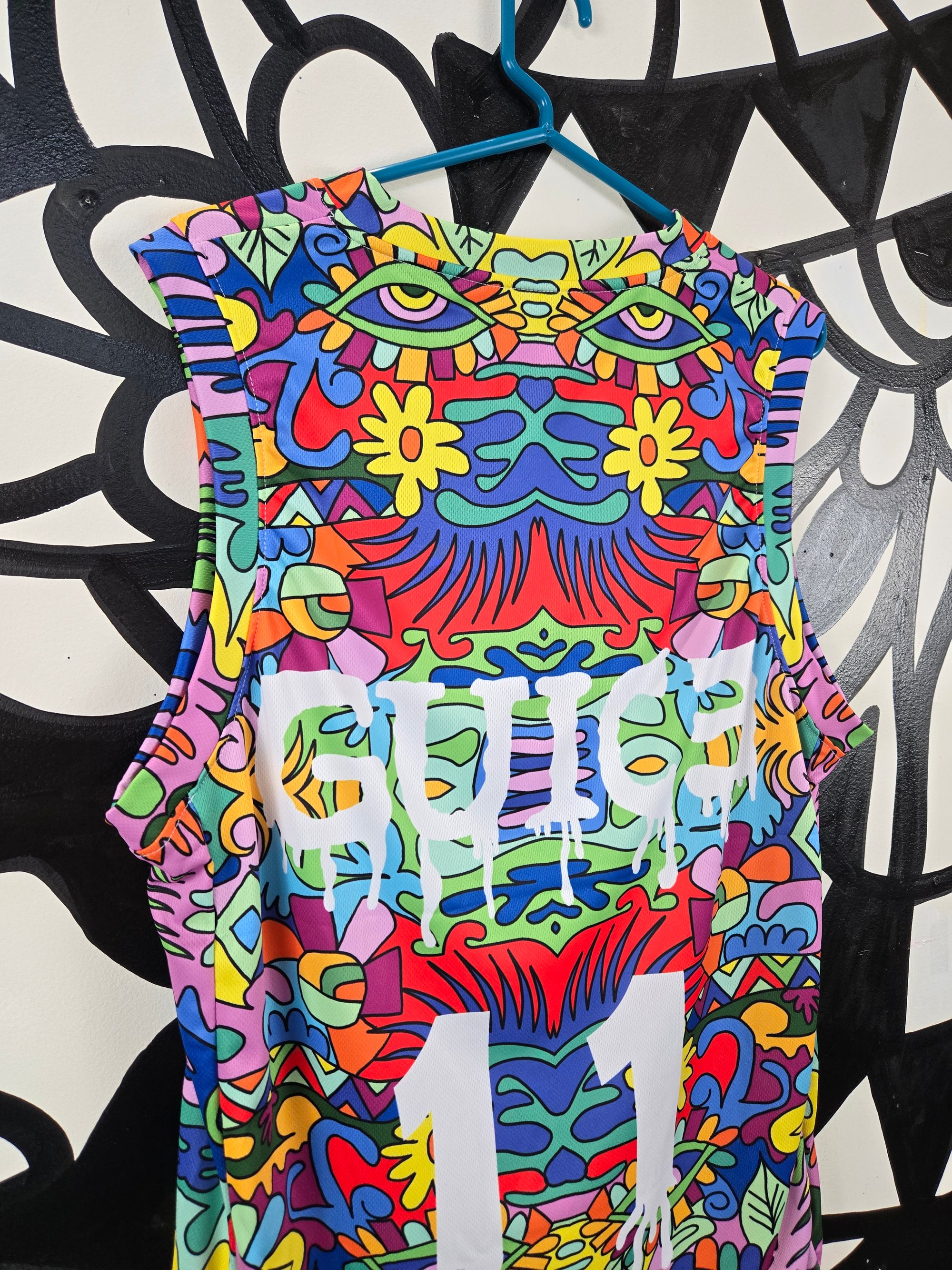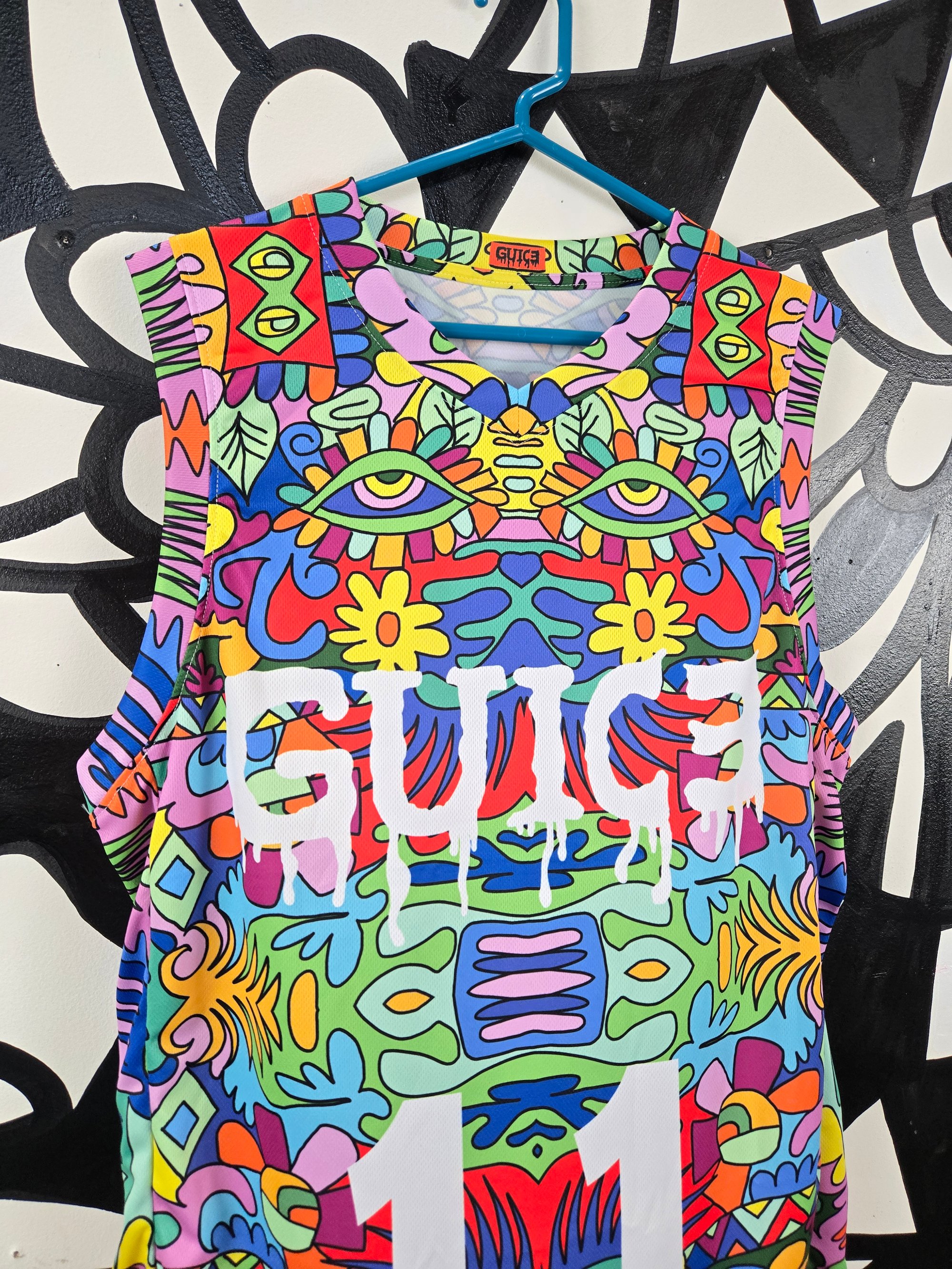 Official Guice Rainbow Jersey #11. Turbo charge your game on the court with this jersey and break the freakin backboard!! All over print sublimation. 100% recycled polyester. Made in Mexico of Imported Fabrics. Machine wash cold cycle. Ships within 4 weeks of ordering.