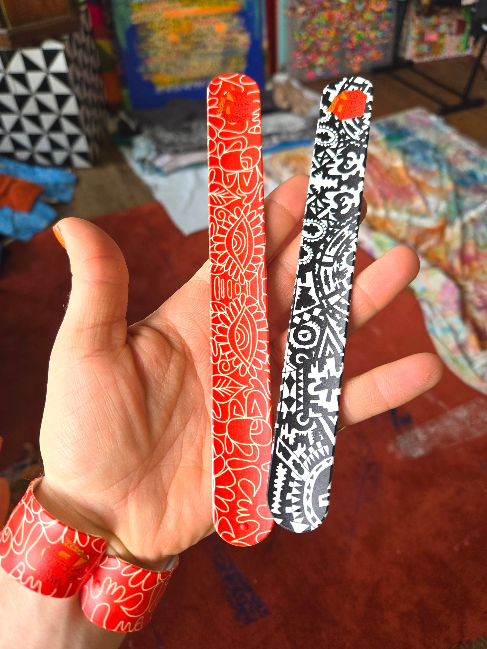 Official GUICE Slap Bracelets are here!!! 2 for $8. You get 1 black and white Geometric Realms slap bracelet and 1 orange Geometric Vibes slap bracelet. Guaranteed to bring your energy field to higher levels upon adding to your wrist.
