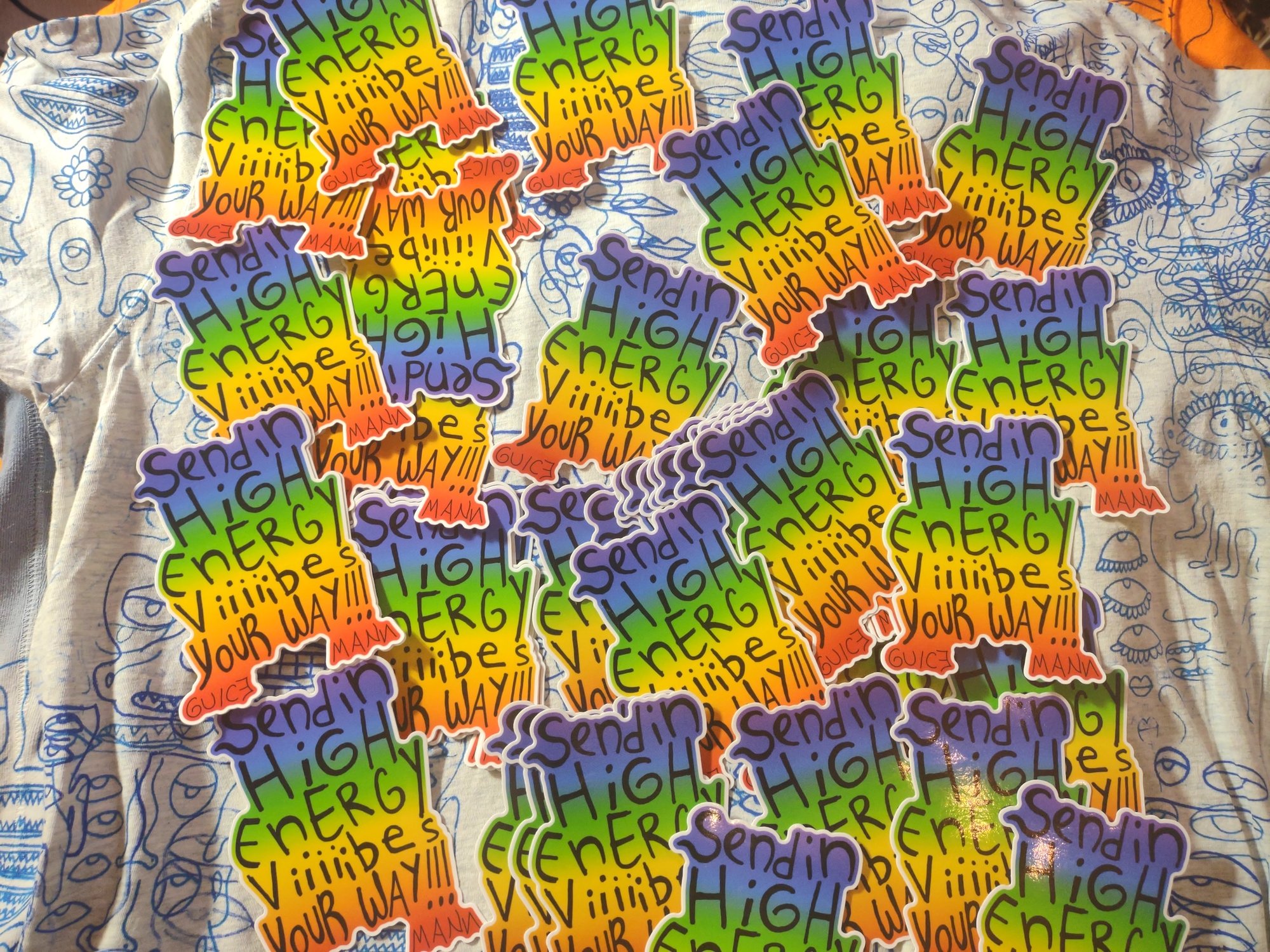 Boost your vibes and others vibes with this HIGH ENERGY VIBES sticker.
